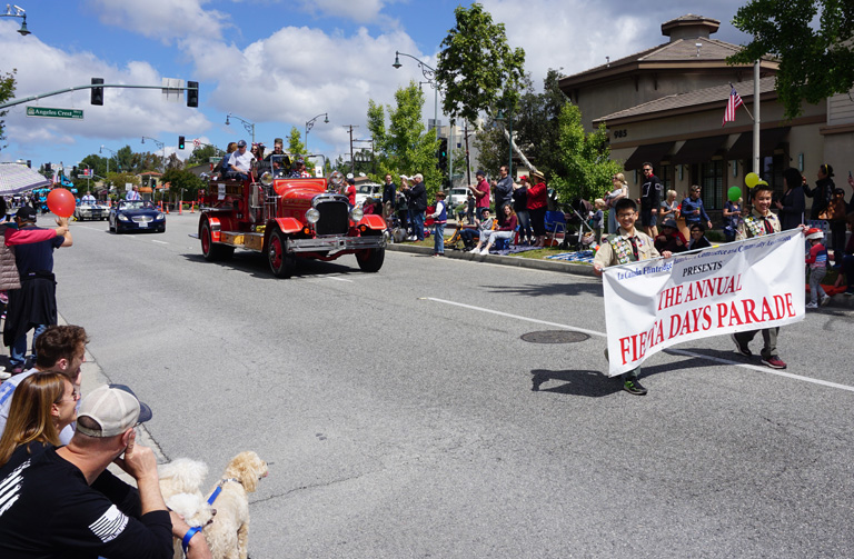 Carl Christensen, another Kiwanis Club member, drove granddaughter Francesca in the Fiesta Days Parade in a silver Mercedes.