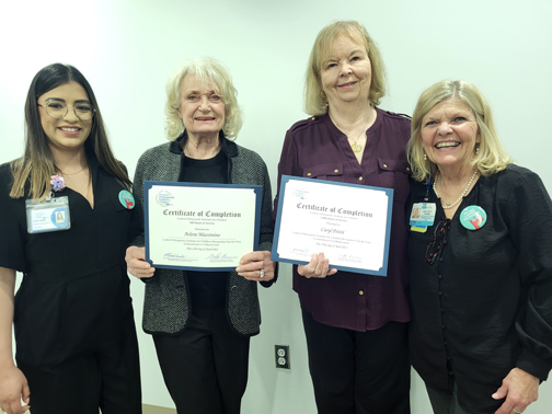 Several members of La Canada Flintridge Orthopaedic Guild (LCFOG) attended a Volunteer Recognition Awards ceremony recently at Luskin Orthopaedic Institute for Children (Luskin OIC). Of note was Caryl Pettit, who was honored for donating 3,500 hours to date. Arlene Massimino was also thanked for her volunteer service of 100 hours to date.