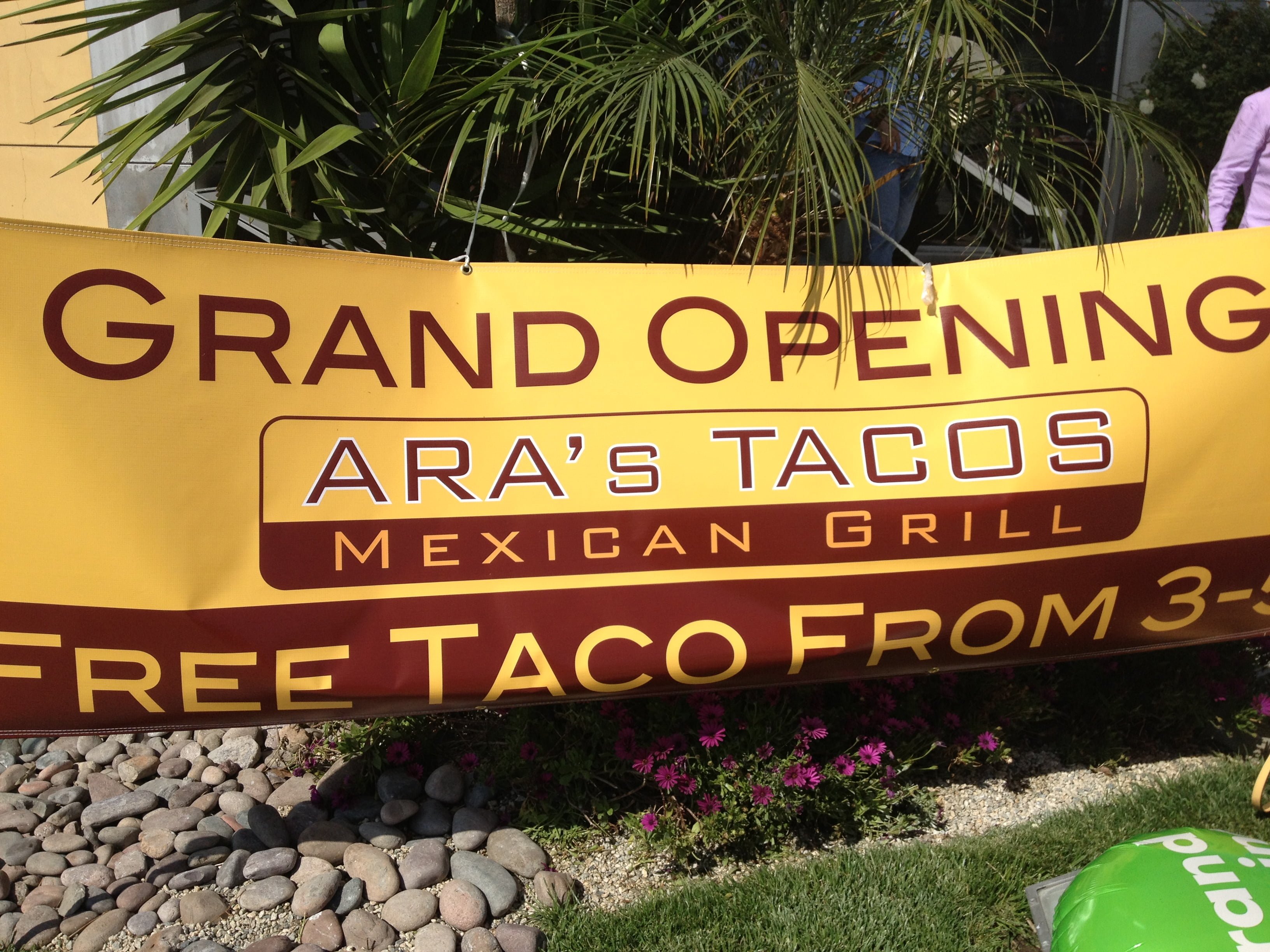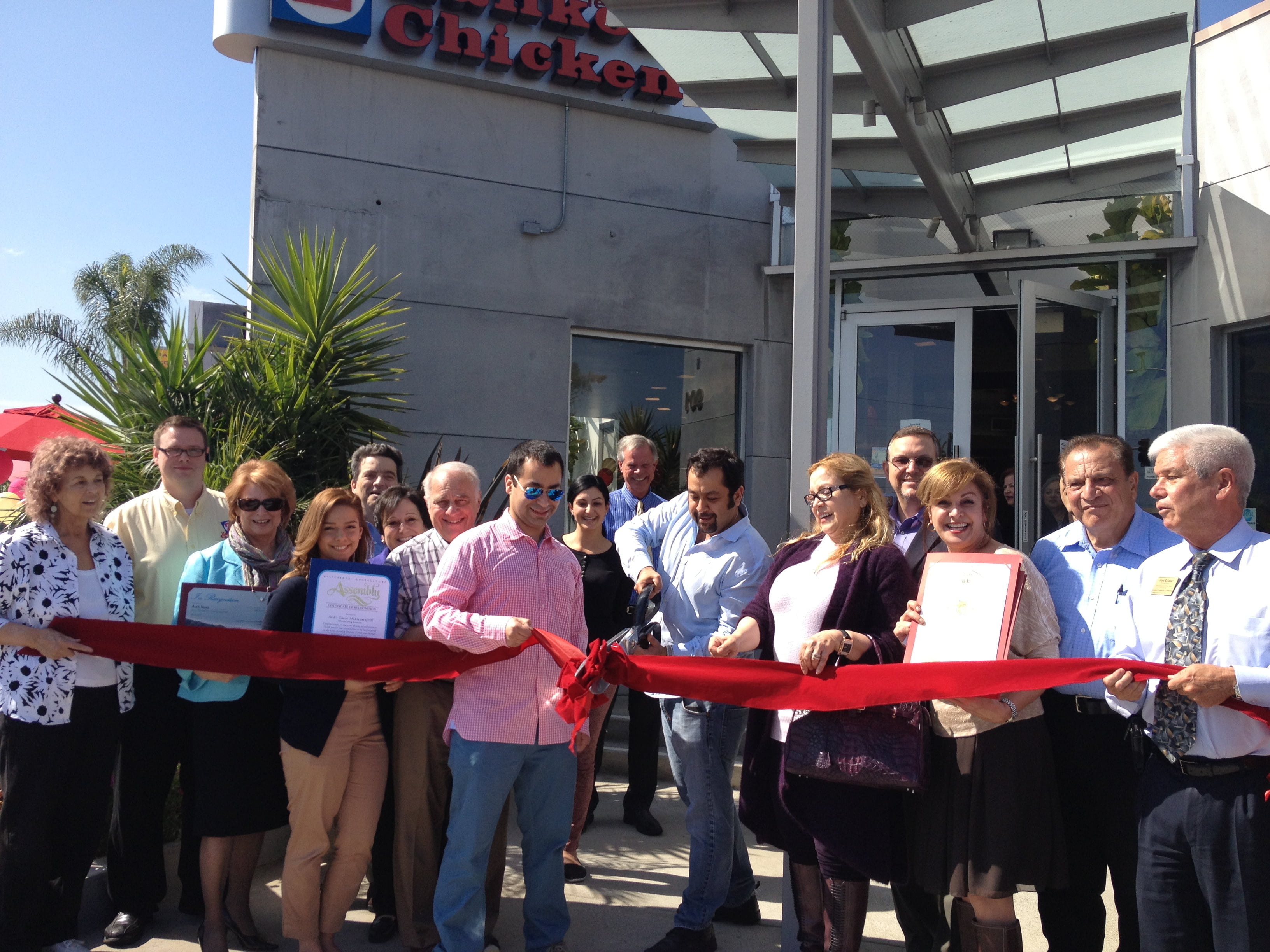 Steve Iskenderian (holding scissors) is the owner of Ara’s Tacos and is shown at the company’s ribbon cutting with family members Ara (in pink shirt) and mother Rita. He is surrounded by representatives from the offices of Asssemblymember Mike Gatto and Supervisor Antonovich and members of the Glendale Chamber of Commerce.