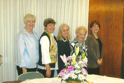 Pictured above from left are Linda Rose, chapter GD president; Karil Drake, chapter KD vice president; Debbie Steffens, chapter JI recording secretary; Charlene Carnachan, chapter IH corresponding secretary and Emily Whytock, chapter FF treasurer.