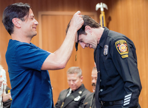 Phillips thanked those who saved his life in person and presented medals to each of the heroes at a ceremony on Wednesday, May 24. He also stressed the importance of CPR, which he also credited with saving his life.