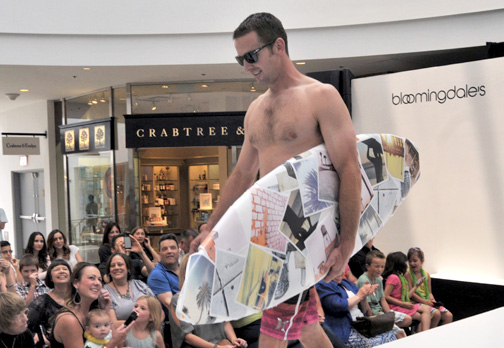 Shoppers and supporters gathered around the runway on the second floor of the Galleria in front of Bloomingdale’s to check out the fashion show. Many shoppers who stopped by to see what the commotion was all about stayed for the rest of the show. Shoppers on the upper floors peered down to see local firefighting heroes strut their stuff on the runway. Cheers and applause echoed throughout the Galleria as each model showed off his fashionable outfit. Not surprising, the firefighters were enjoying all the attention.