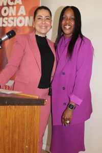 Keynote speaker Natalie Samarjian was introduced by GUSD Superintendent Dr. Darneika Watson. Samarjian is president and CEO of Coro Southern California and is Glendale’s commissioner with the Commission on the Status of Women. She inspired all with her story. She and her mother fled from the Lebanese civil war to the U.S., settling in Los Angeles. Samarjian remained undocumented until her mid-teens. Her mother is a survivor of domestic violence. Samarjian’s keynote reminded the audience of the importance of leading with purpose, compassion and courage. She exemplified the YWCA’s mission to eliminate racism and empower women. Samarjian ended her remarks with “When women are not seated at the table, we are often on the menu.”
