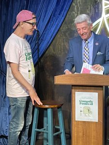 North Hollywood’s The Comedy Chateau hosted comedian Tom Dreesen as part of its 4th Annual International Comedy Festival. On Thursday, June 26 the comic hosted a two-hour seminar, “The Joy of Standup & How to Get There.” Some 30 comics – veterans and newcomers, most from the nearby communities – attended. Introducing Dreesen was Comedy Chateau owner Felix McNulty.