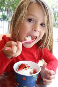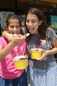 La Crescenta resident Isabella Castro, 3, enjoys her Tutti Frutti yogurt. Photos by Ruth SOWBYLa Crescenta sisters Nina Frommel-Martinez, 9, left, and Leni Frommel-Martinez, 12, share a spoonful of their Tutti Frutti frozen yogurts in Montrose. On June 29, the Crescenta Valley High School Music Dept. held a fundraiser at yogurt shop and a portion of Tutti Frutti proceeds helped support the department.