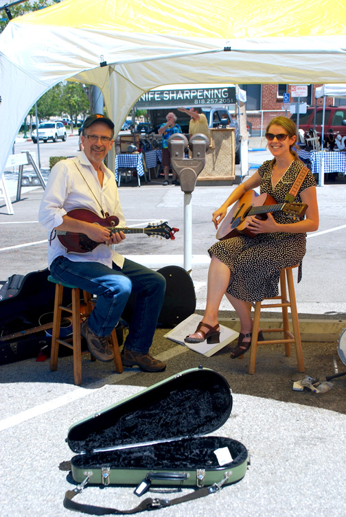 The weekly market has a wide variety of vendor tents each week. Produce, eggs, nuts, olive oils, pastries and jewelry are offered to market visitors. Guests might also hear some tunes from local musicians who have set up their instruments for the day. On a recent Thursday, guitar duo Cliff and Laura were on the scene to offer entertainment.