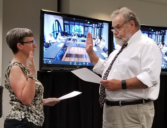 At the recommendation of the Crescenta Valley Town Council, Karen Buehler was recently sworn onto the advisory committee of the Santa Monica Mountains Conservancy. She will be representing the unincorporated communities within the jurisdiction of the Eastern Rim of the Valley Trail Corridor, which is appointed by the County of Los Angeles, Supervisor District 5, Katherine Barger. Joseph T. Edmiston officiated.