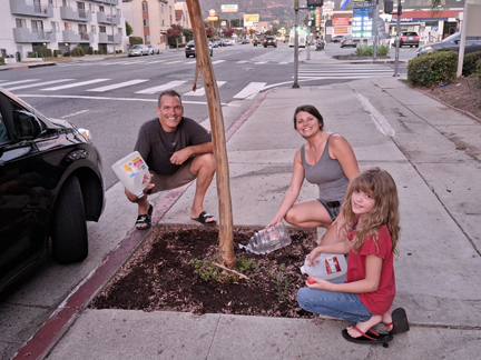 Twenty-five volunteers showed up on Saturday, July 27 to water over 100 trees along Foothill Boulevard and Sunland Boulevard in Sunland. This was a project organized by Pat Kramer of the Crescenta Valley Group of the Sierra Club with the help of Council District 7 Deputy Ricardo Flores. The volunteers were each assigned four trees to water though some folks watered as many as 10 trees, each volunteer getting 10 gallons of water to deep-water the roots.