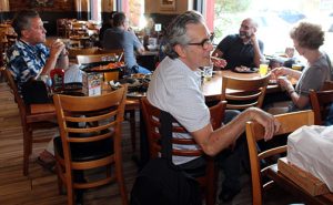 Former Glendale mayor and current Councilmember Dan Brotman also attended as a guest. He eschewed pizza in favor of a bit of a beverage. Former GLA member Stephen Ropfogel was single for the night having left recently retired wife Pamela at home.