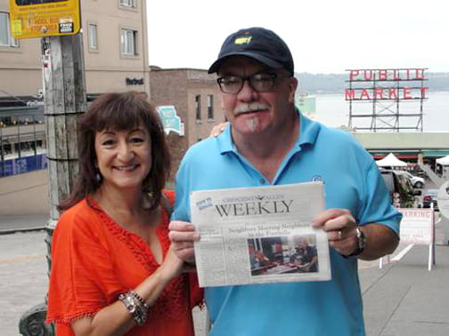 Gregg and Patty Inboden took CV Weekly along on their recent trip. They’re shown here with CV Weekly at the Public Market in downtown Seattle.