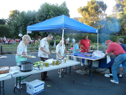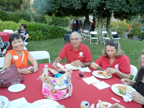The La Cañada Flintridge Tournament of Roses Association’s August Hamburger Night Happy Hour was hosted again this year by Sarah and Mayfield Marshall at their home on Vineta Avenue. Friends and supporters of the association enjoyed appetizers and huge hamburgers cooked on the grill and accompanied by potato salad, baked beans and all the fixings.