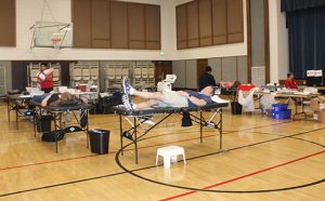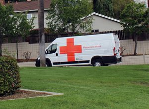 Close to 50 people on Sept. 18 packed the Cultural Hall of the La Crescenta congregation of the The Church of Jesus Christ of Latter-day Saints. The American Red Cross van parked near the entrance to the church drew those ready and willing to donate blood.