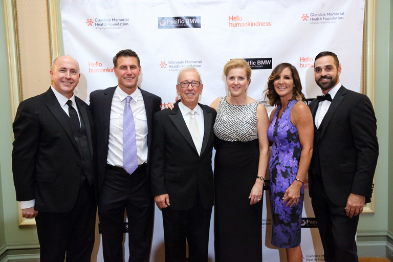 At the 2017 Wine and Roses event were (from left) Chief Philanthropy Officer Wayne Herron, Justin Johnston, Foundation Board Chair Santo Polito, MD, Foundation Board Vice-Chair and Wine and Roses Co-Chair Kathleen Dennis-Zarate, MD, Glendale Memorial Interim CEO, Julie Sprengel and Wine and Roses Co-Chair Haig Youredjian.