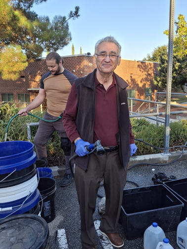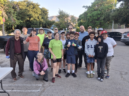 The 25 volunteers ranged in age from 12 to 80 years old and, in just 2.5 hours, they each watered 110 trees with 10 gallons along Foothill Boulevard. Fifteen more trees were watered that evening by committee members, bringing the total to 125. The trees watered were on either side of Foothill Boulevard in Sunland stretching from Mt. Gleason Avenue to Sunland Boulevard at the 210 Freeway exit.