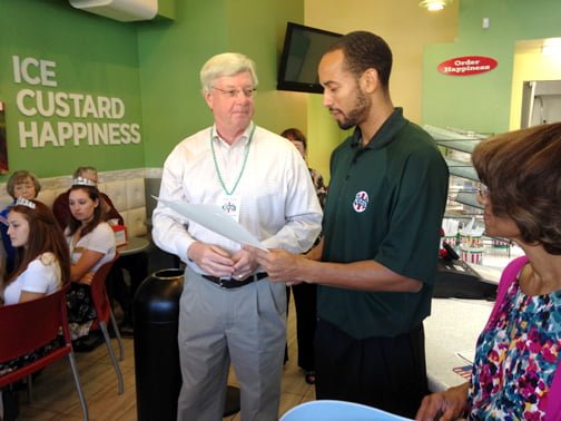 The community turned out for a ribbon cutting Rita’s Italian Ice held on Sept. 26. Owner Chris Rodgers welcomed the public as well as members of the Miss LCF court and dignitaries.