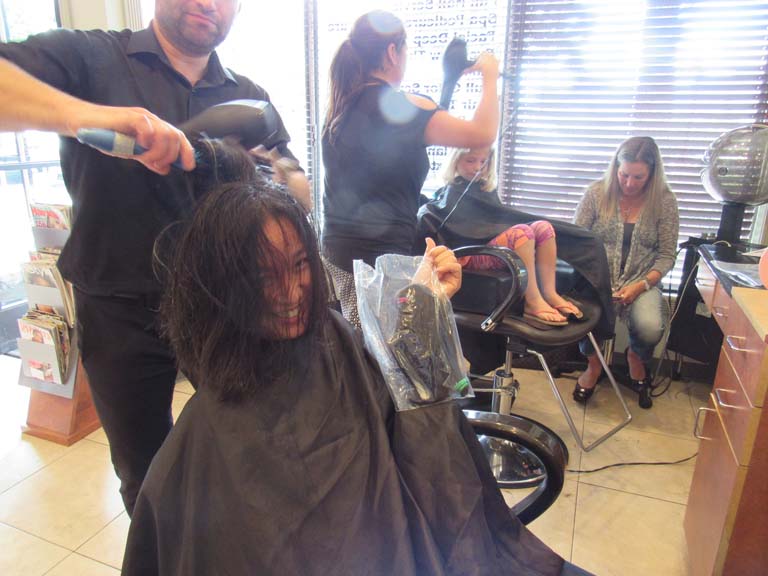 When asked if she had told any of her friends about her plans she answered, “No.” She giggled as she added that her friends would be surprised to see her with her new short hairdo.