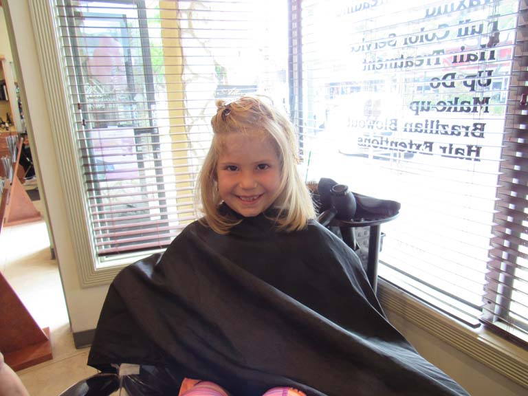 Olivia Spears is a first grader at Lincoln Elementary School. She was getting her hair cut for the first time and ready to donate her long hair. She had been a flower girl at a family friend’s wedding in June. The bride had been diagnosed with cancer earlier and Olivia wanted to do something to help.
