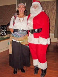 Party chair Marilyn Wright (who seemed to be a cross between a pirate and a belly dancer – you should have seen the booty action on the dance floor!) conceived of and executed the abandoned, eerie old graveyard on the stage with the help of her husband Tim. More fun decorating was achieved with the team effort of Cathy Faddis, Gloria Lee, Vickie Guargliardo, Carol Benedetti and Carol Huntwork. Marilyn had the continuous track of ‘40s, ‘50s, and ‘60s music specially programmed for this event, but the only over-the-hill guests attending were in the aforementioned cemetery.