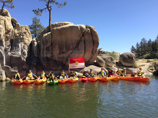 Lined up are the Boy Scouts of Troop 319 out on a Kayaking adventure on Big Bear Lake last weekend. We headed up on Saturday where we put in a full day of trail building. On Sunday it was our time to relax by taking a self guided kayaking tour from Boulder Bay down to the dam and back. It was an absolutely gorgeous weekend and a great time was had by all !