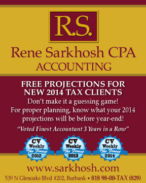 As confirmation of his standing in the community and his excellent business practices, Rene Sarkhosh has been voted Crescenta Valley Weekly’s Finest Accountant for three consecutive years – 2012, 2013 and 2014.