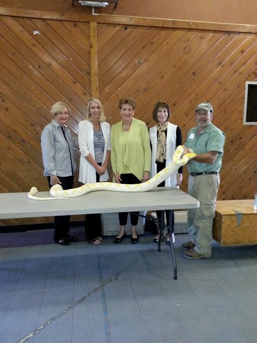 Enjoying an afternoon at Hillsides were (from left) Marilyn Olson, Nancy Stone, Sharon Anderson, Ellyn Semler and Bruce Shwedick (holding an albino milk snake).