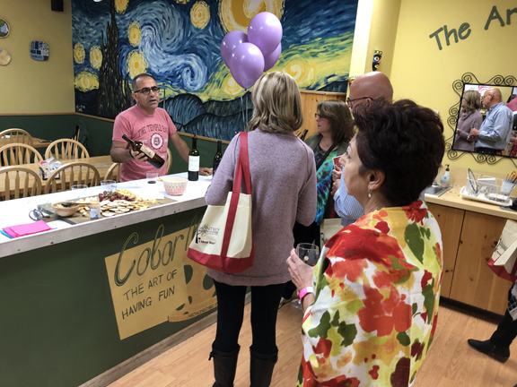 The wine walk is held twice a year – in the spring and again around the holidays. Each time, ticketed guests are given a labeled glass to use on the walk then take home, tasting tickets to redeem for wine at the various locations, a tote bag and $10 in scrip redeemable at the stores of the shopping park.