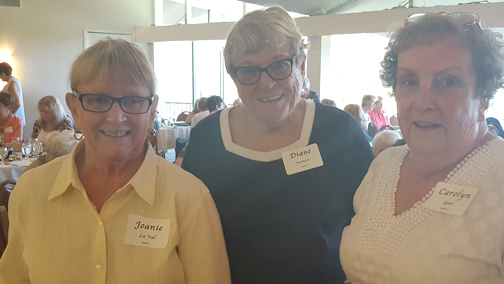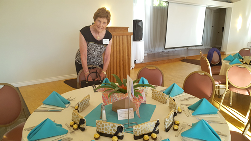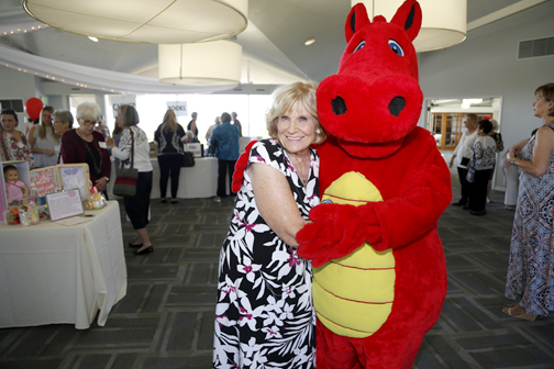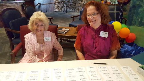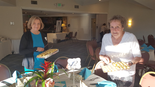 Caryl Pettit, chair, and Arlene Massimino, co-chair, were the luncheon’s organizers, but all members of the Guild worked to ensure the luncheon’s success. The morning began with Danette Erickson and Ginney Pruitt setting nametags on the guests’ reservation check-in table. Marilyn Center took control of the Bonus Board that offered surprise gifts in sealed envelopes. Carolyn Geer and Judith McClure were busy placing favors at each guest’s table setting. Easy Delaney, assisted by Carolyn Geer, took charge of the 50/50 opportunity drawing and greeted guests their balloon-adorned baskets. Jeanne Long, Maria Gero and Barbara Self were occupied setting up the book purchasing area and distributing books to the many avid readers.