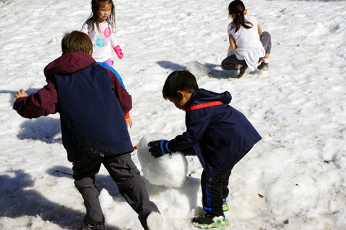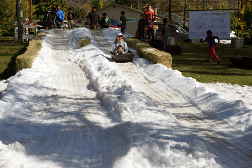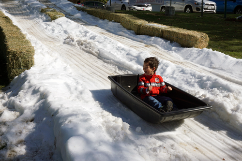 In addition to the sledding run sliding down the hill, there were two snow fields for making snowmen and having snowball fights, and a chance to meet Santa Claus for a photo op and imparting a Christmas wish.
