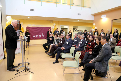 Every night, Ascencia’s dining room is filled with families and adults who are living in its 40-bed emergency shelter. On the afternoon of Dec. 2 it was filled with the people who helped make the two-story space and the offices and the shelter surrounding it possible.