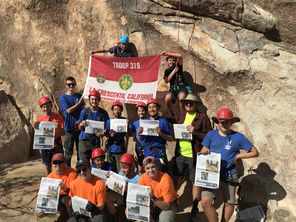 With the cooler temperatures here to enjoy, the Boy Scouts of Troop 319 headed out to Joshua Tree National Park to work on their rock climbing and rappelling skills in early November. As always, they brought along copies of the CV Weekly to read around the campfire Saturday evenings and catch up on local news.