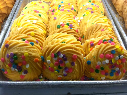 When you think sugar cookies, Montrose Bakery quickly comes to mind. They have been creating them for decades and happily boast 25 different varieties. On any given day you will find a very colorful and sometimes whimsical assortment ready to go into a paper bag or box. Café owner Henry Baeza sells these gems for $6 a dozen. My favorite is the confetti swirl cookies pictured below. They are so happy and great for birthday parties and festive occasions. There are also swirl cookies with multi-colored or chocolate jimmies, classic thumbprint cookies filled with jam, traditional peanut butter, chocolate dipped, and Italian biscotti, just to name a few. The Montrose Bakery & Café (2325 Honolulu Ave.) is the perfect place to sit outside, enjoy a full meal, watch the world go by, and then get baked goods to go.