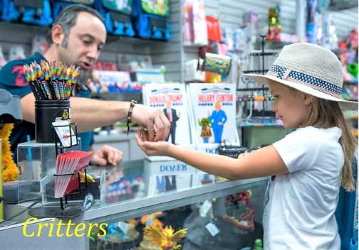 Our next stop was Critters. A veteran in the Montrose Shopping Park, Critters offers a variety of unique toys, magic tricks, collectables, candy, balloons and just about everything that makes life fun! Advising Ashlin not to spend all her money in one place, it was a tough call between a mood ring or a necklace … Can you guess which one she bought? The necklace!