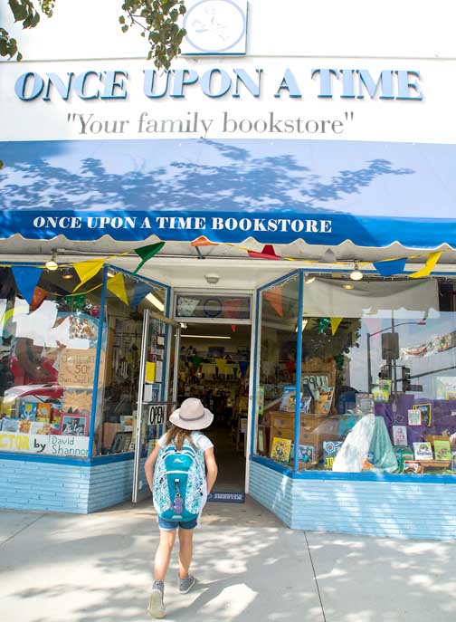 We then ventured down Honolulu Avenue to Once Upon a Time – the oldest children’s bookstore in the nation. Here we browsed all the delightful books, petted the store’s cat Pippa, and found a cozy bench in the corner to read. After careful consideration, Ashlin purchased the book, “The Unwanteds.” With a $1.82 left, we made our way back to Critters to buy some candy, walk up the rainbow stairs and head home for dinner.