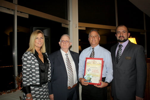Accepting the Don Carpenter Award was Joe Kroening with (from left) Holly Heurkins, presenter Eleanor Wacker and chamber president Leonard Ghazarian.