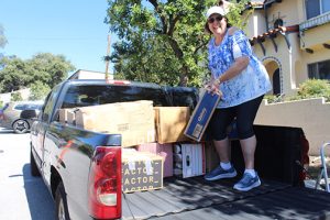 CWC Treasurer Cindy Charles loads one of 85 boxes of shoes for Soles4Shoes collected by the La Crescenta Woman’s Club.