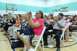 Mariachi EP Estrellas Del Pacifico, representing the Latino culture, took the stage as some 700 guests returned to their seats after sampling a wide variety of international foods. Especially popular was the Italian booth where hungry guests loaded their plates with pizza slices. The Cuban restaurant Porto’s served its signature potato balls (papa rellena).