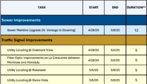 Contractor will be performing utility locating and potholing for sanitary sewer upgrades and traffic signal upgrades