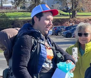 “The thing that surprised me more than I expected was just the kindness of strangers. There were a lot of people who would pull over to the side [of the road] and offer me a water bottle,” he said. “It was just the general acts of kindness that really surprised me. There was one day, it was mildly raining and I had a poncho on. Someone pulled over with a brand new rain jacket – it had a tag on it – and gave it to me. Just moments like that … they always move me because I never expected them.”