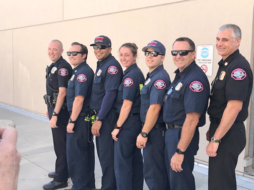 The pink support has spread to the Glendale Fire Dept. this year with firefighters donning a pink emblem on their uniforms as well.