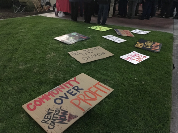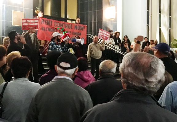 Driving by the Glendale City Hall on Tuesday night, one could not help but notice the large crowd on the steps of city hall. The mass of over 100 people was gathered to protest the lack of rent control within the City of Glendale.
