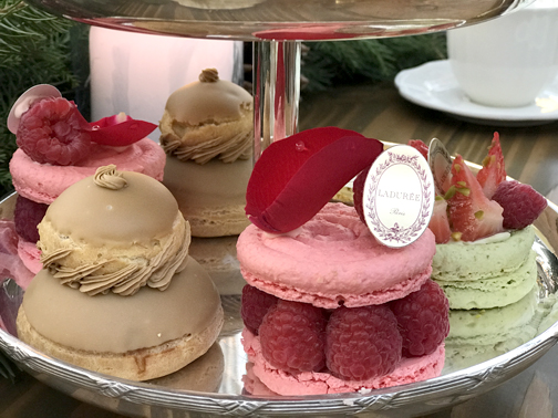 Shopping can be tough. The crowds, the hustle and bustle, and carrying those packages and bags all over. Don’t get me wrong; it’s a good problem to have, but after a day of hitting the mall hard it’s nice to have a little respite, a place to recharge, set the bags down and unwind. Enter Ladurée, a new Parisian bakery and teahouse in the Americana at Brand.