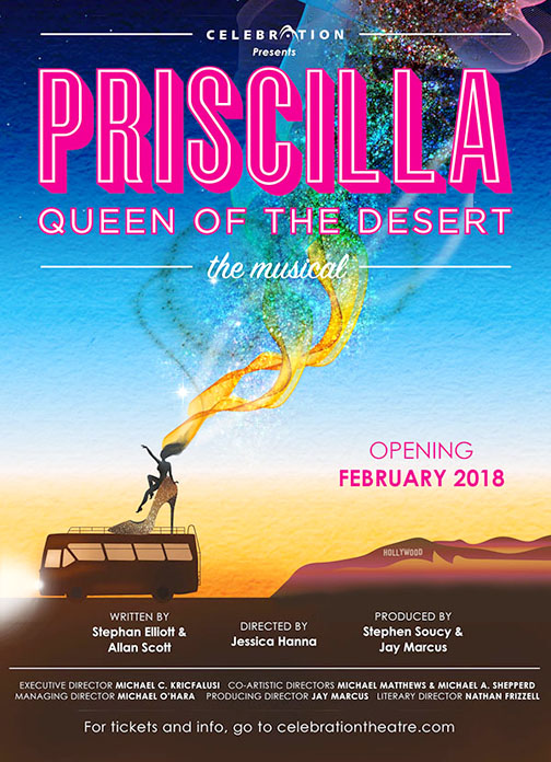 “Priscilla Queen of the Desert the Musical” is a hilarious, outrageous and fabulous musical road trip featuring some of the most classic dance songs of all time including “It’s Raining Men,” “I Will Survive,” and “I Love the Nightlife.” Set in Australia, PRISCILLA follows three drag queens as they drive across the outback in a rundown old bus searching for love and fulfillment and end up discovering what true friendship really means. Written by Stephan Elliott and Allan Scott, with music by Jennifer Lin, and directed by Jessica Hanna, it runs February 16 through March 25 at the Celebration Theatre @ the Lex Theatre in Los Angeles. For tickets call 323-957-1884 or visit www.celebrationtheatre.com.