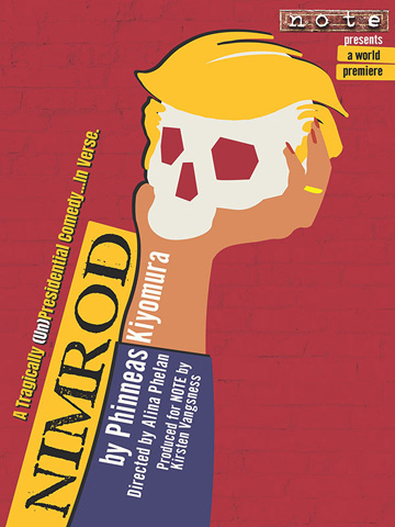 “Nimrod” is the meeting place between Julius Caesar and “The Simpsons Movie.” It explores the breakdown of language (the fact that we’re speaking two languages) in this tendentious modern political age – this age of stupid lies, un-fake fake news, alternate facts and real bone chilling tragedy. “Nimrod” is a brute farce written in verse that follows an imagined final year of an uncouth, bloviating, orange-hued President’s administration from the point of view of the beleaguered First Lady. It’s a wild ride full of betrayals, unexpected violence and grand soliloquies (larded with even grander fart jokes).