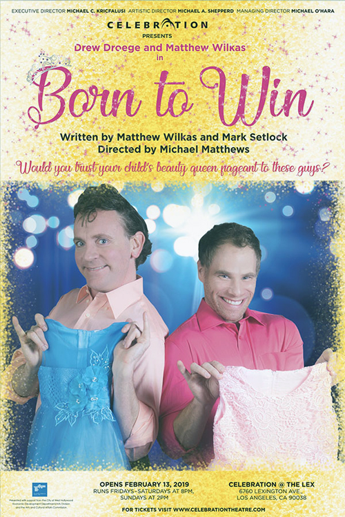 “Born to Win” Pinky Corningfield has always dreamed of her daughter winning the “Supreme Queen.” So when Marge, a newcomer to the child pageant circuit, shows up with her daughter and starts grabbing all the glory, Pinky will stop at nothing to get the crown. Written by Matthew Wilkas and Mark Setlock, and directed by Michael Matthews, it runs February 15 through March 31 at the Celebration Theatre in Los Angeles. For tickets call 323-957-1884 or visit www.celebrationtheatre.com.