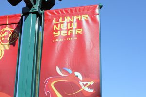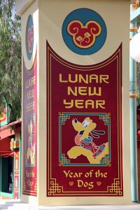 Mulan and Mushu the dragon lead the celebration as the iconic Asian characters from the Disney stock. And with it being the Year of the Dog, Goofy and Pluto take starring roles as well, featured on merchandise, on signage, in promotional materials and more. The entire back corner of Disney California Adventure is taken over for the celebration surrounding Boardwalk Pizza and Pasta, utilizing the seating area as well as the neighboring Paradise Garden Grill. In all, the festival runs from the Little Mermaid attraction all the way down the waterfront almost to Silly Symphony Swings.