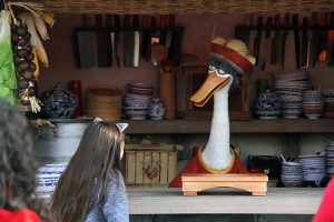 My favorite aspect is Mr. Ping’s Noodle Shop. Any guests who have visited Donkey (from Shrek) at his waffle stand elsewhere in the park will be familiar with the giant, intricate puppet-and-voiceover combo that make it super realistic to interact with a famous wise-cracking character. Mr. Ping is the same way, with the window to his shop open to speak with guests before they go around the corner to get one of his famous noodle dishes. And while the noodles left a lot to be desired and the potstickers could have been better, the experience of interacting with a three-foot-tall goose was fun, and everyone leaves with a smile.