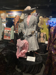The exhibit itself featured an array of costumes from award winning Black actors and musicians including an outfit from Whitney Houston World Tour to dresses performed in by Natalie Cole and Eartha Kitt as well as a set of flowered jumpsuits worn by the Pointer Sisters. The TV and movie costume section, arranged by costume designer Sean LeBlanc, contained outfits from TV shows such as “The Jeffersons” designed by Betsey Potter, and a bubblegum pink RuPaul outfit from the movie “Zombie Prom” designed by LeBlanc.