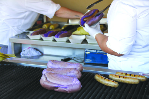 The Boysenberry Festival this year utilizes the same “taste of” moniker and format of the previous four food festivals from the last year – Taste of Calico, Taste of Knott’s, Taste of Fall-o-Ween, and Taste of Merry Farm. The Taste of Boysenberry Festival offers more than 80 food and drink items with a special boysenberry flare. Offerings range from the mundane to the adventurous, from the familiar to the brand-new creations of Knott’s culinary team. For the price of admission, guests get a tasting card loaded with five tasting redemptions to choose whatever suits their palate. Five tasters, and when they say tasters, they really mean five moderately-sized meals. Whereas other food festivals from other parks offer tiny portions, maybe three bites or so, to get the idea of a dish Knott’s has pulled out all the stops and offers nearly a full-sized entrée for each “tasting.” If a couple goes to the festival on empty stomachs, with 10 tasting tickets between them, it is very likely they will have leftovers to take home.