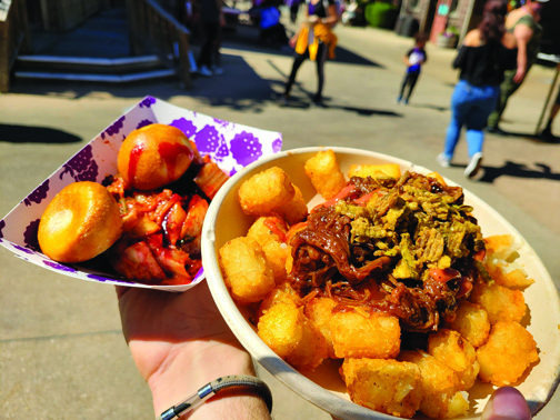 Knott’s Berry Farm hosts its annual Boysenberry Festival each spring to pay tribute to the berry that made the Knott family their fortune. Last year, the park held a media event to showcase some of the food planned for the festival in early March. Eight days later, the park announced a temporary closure of two weeks due to the oncoming coronavirus pandemic. Since then, the park remained closed for full operations, opening only as a shopping and dining venue for food festivals on select weekends. With a full reopening in sight as early as next month, the time for the Boysenberry Festival has rolled around again. Knott’s Berry Farm, now old pros at the “pandemic food festival” format, is back at it with the best food festival yet, a festival even better than the ones when the park was open.