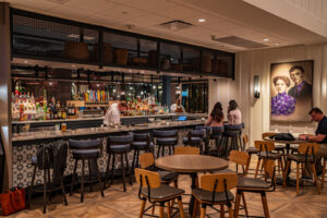 The transformation of the Knott’s Hotel is not merely cosmetic but a renaissance of the Knott’s legacy, blending tradition with contemporary elegance across its 322 rooms. The lobby now welcomes guests with a redesigned registration area that leads into a grand great room, inviting visitors into a space that feels both new and nostalgic. The central chandelier, reminiscent of jam jars from yesteryear, and carpet adorned with boysenberry motifs are thoughtful touches that connect the hotel’s aesthetic to its roots in the boysenberry farm that started it all.